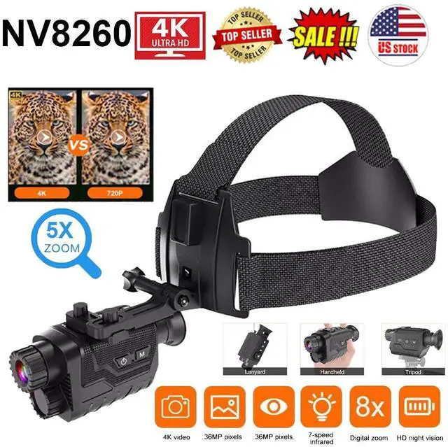 NV8260 8X Digital Zoom 400M 4K 1080P HD Night Vision Head-Mounted Monocular USA