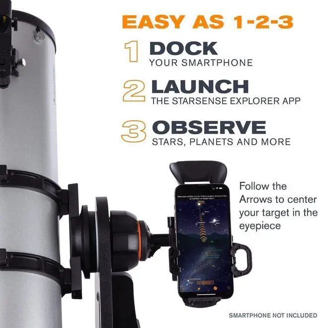 SMARTPHONE-POWERED SKY TOUR: No experience needed! Just dock your phone, launch the StarSense Explorer app, and follow the on-screen arrows to locate stars, planets, nebulae, and more.