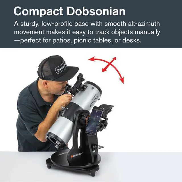 SIMPLE SETUP, SMOOTH TRACKING: Features a manual altazimuth tabletop Dobsonian-style base. Follow the on-screen arrows to your target; when the bullseye turns green, you can view it clearly through the eyepiece.