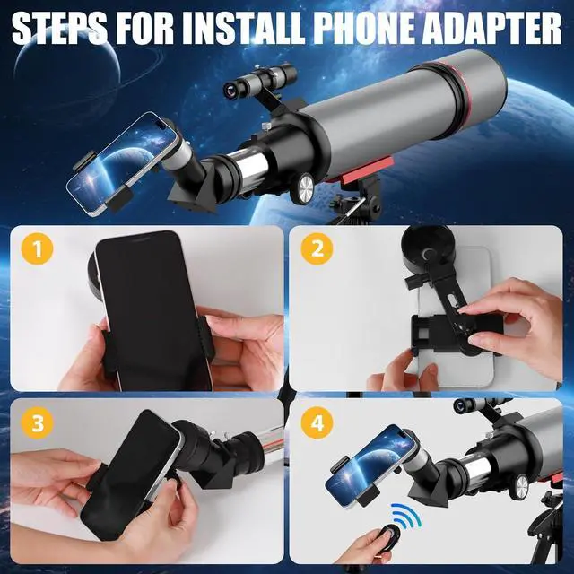 Complete All-in-One Astronomy SetComes ready to use with everything you need: telescope for adults, smartphone adapter for basic astrophotography, adjustable tripod, carry bag, and user manual. No extra accessories required. An ideal gift for holidays, birthdays, or educational use in homes and schools. Start your stargazing journey today!