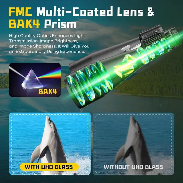 HIGH-QUALITY OPTICS FOR SUPERIOR CLARITY: Constructed with multi-coated optics, the FLYANT Binoculars minimize glare and provide enhanced contrast, ensuring sharp and vibrant images. The BaK-4 prisms further enhance light transmission and color fidelity, delivering professional-grade performance.