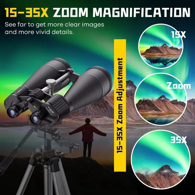 15-35x80 Astronomy Binoculars for Adults, High Powered 35x Zoom HD for Stargazing & Bird Watching, Waterproof Binocular with Tripod Adapter, Ideal Essentials for Cruise Ship, Travel, Camping, Hunting