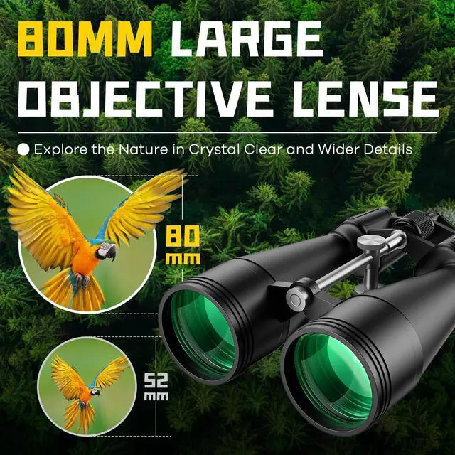 MASSIVE 80MM OBJECTIVE LENSES: Equipped with large 80mm objective lenses, these binoculars gather more light than standard models, making them ideal for low-light conditions. Whether you're observing under a moonlit sky or during a meteor shower, the FLYANT Binoculars will reveal hidden details and bring the cosmos to life.