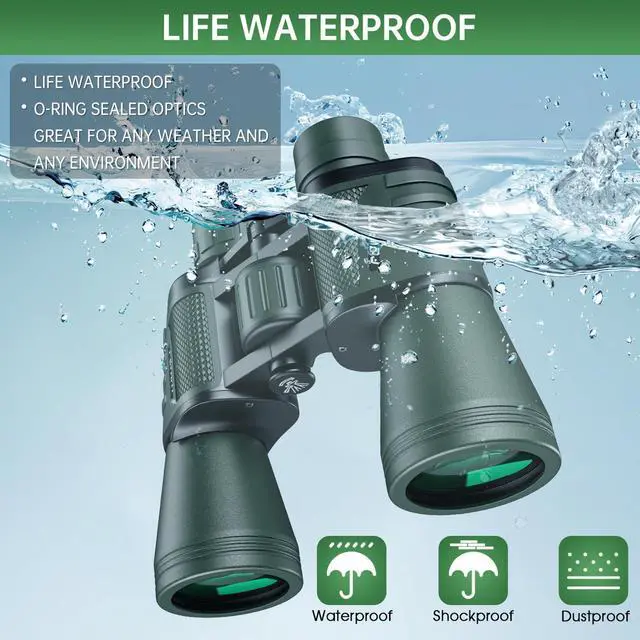 20x50 High Powered Binoculars for Adults, Waterproof Binoculars with Low Light Vision for Bird Watching Hunting Camping Travel Cruise Hiking Sports Stargazing, Gifts for Men Dad