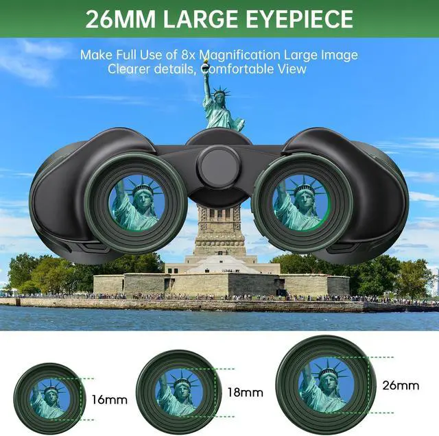 OPTIMIZED EYEPIECE DESIGN - The 26mm eyepiece is ergonomically designed to comfortably fit the eye structure of users, providing a wider and clearer field of view for birdwatching and other outdoor activities. The large eyepiece design helps maintain visual stability, reducing the risk of dizziness and eye fatigue during prolonged use. These binoculars make an ideal gift for men, dads, Fathers Day, Christmas, and birthdays.