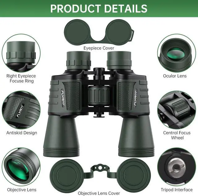 UPGRADED HIGH-POWER BINOCULARS - These premium binoculars feature a high-magnification 20x zoom eyepiece and offer a 168-yard field of view at 1000 yards. This allows you to observe and focus on intricate details of distant targets up to 1000 yards away, delivering exceptionally broad and clear long-distance vision. Ideal for adults engaged in bird watching, hunting, camping, climbing, hiking, safari, travel, opera, concerts, sports events, and stargazing. They are essential gear for camping, hunting, travel, and cruises.