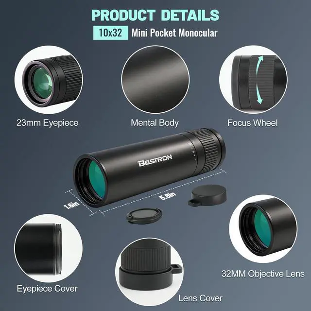 [Metal Body Waterproof & Fogproof]The all metal structure ensures that this handheld monocular telescope has excellent waterproof and anti fog performance in various humid environments. This pocket telescope is sturdy, durable, and earthquake resistant. In harsh environments, this handheld telescope always provides reliable support for you.