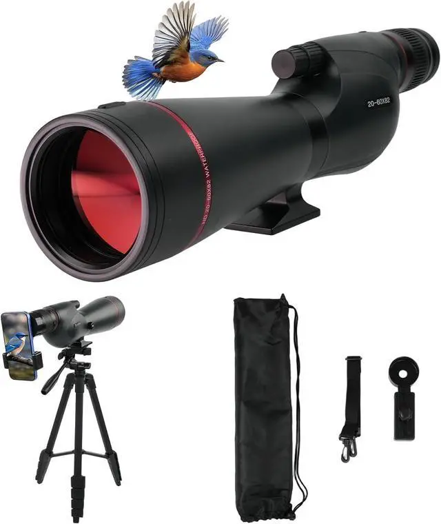 20-60x82 Spotting Scopes for Target Shooting with Upgraded Large Eyepiece, Spotting Scope with Tripod Carrying Bag Phone Adapter, BAK4 IPX7 Waterproof Spotter Scopes for Birding Watching