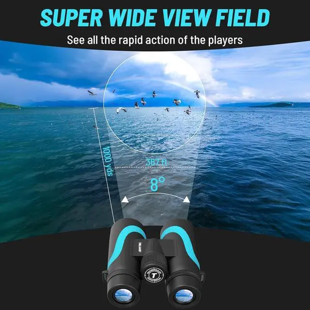 High-Powered & Wide ViewEnjoy 15x magnification with an 8° wide-angle field, delivering a crystal-clear 367ft/1000yds view. Perfect for bird watching, marine observation, and sports events. (Fixed 15x magnification no zoom function)