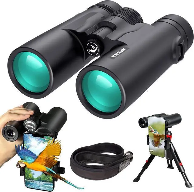 Gosky 10x42 Roof Prism Binoculars for Adults, HD Professional Binoculars for Bird Watching Travel Stargazing Hunting Concerts Sports-BAK4 Prism FMC Lens-with Phone Mount Strap Carrying Bag