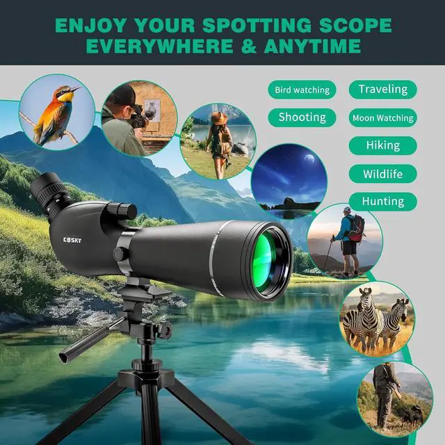 POWERFUL MAGNIFICATION: Adjustable powerful 20-60x zoom magnification allows you to lock onto your target and zoom in for more detail. Perfect for target shooting, hunting, bird watching, hiking, star gazing, travel, sport etc.