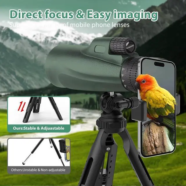 Compatible with Any Smartphone: Equipped with a quick positioning smartphone bracket and a tripod. It is compatible with a wide range of mobile phone models; It is easy to install, and users can remotely operate the monocular, sharing images with family