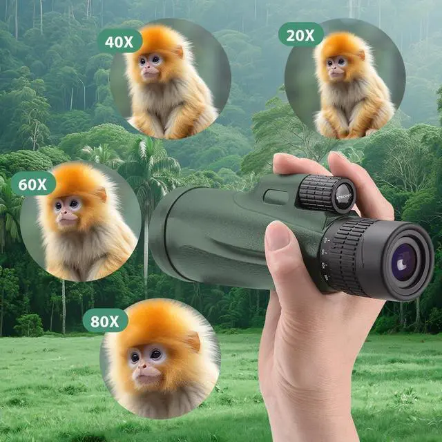 Adjuatable High Magnification: This monocular has adjustable and powerful zoom magnification, which makes it easier to capture more details, seeing further and clearer; It is perfect for bird watching, hunting, etc
