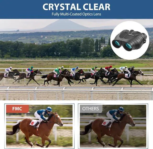 Binoculars with BAK-4 Prism and FMC film lens,which minimizes the loss of light due to reflection.You can easily get bright, contrast images, with non-chromatic aberration.