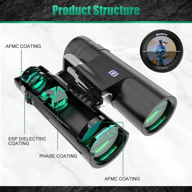 Vivid, Clear & Bright View even in Low LightBAK4 prism lens binoculars adopt fully multi-coated lense and phase-coated prism, which increase the light transmission of binoculars to 99.9%. ,makes the image more transparent,clearer and brighter.