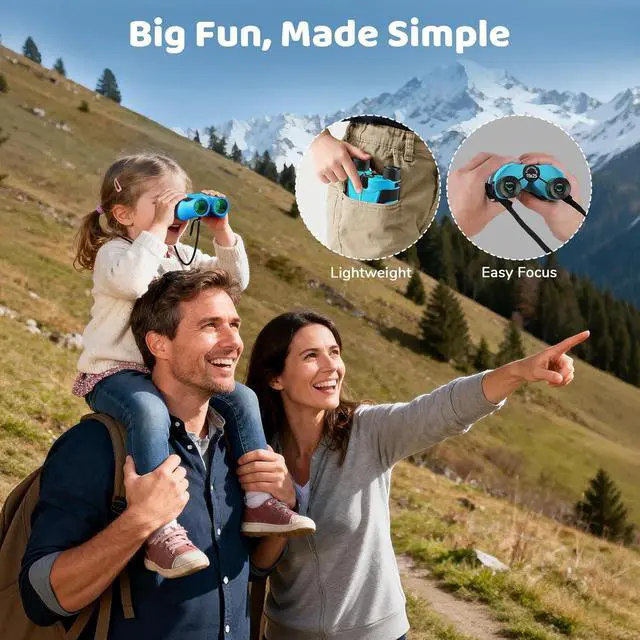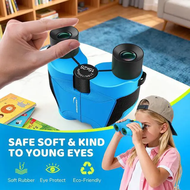 Your Child's First High-Performance BinocularsAwaken your little explorer's curiosity with these up-graded powerful kids binoculars! Featuring premium BAK4 prism and FMC coating for clear, bright views - perfect for birdwatching, camping, and outdoor adventures. More than kids toys, these educational binoculars inspire real learning through hands-on discovery!