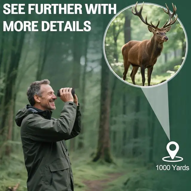 Travel Binoculars for Birdwatchers and HuntersOur hunting binoculars are made of high-quality environmentally friendly materials, with daily waterproof and anti-fog function, rubber coated surface, durable and portable for outdoor use, even for harsh environments, while the lightweight ergonomic grip and easy focus function make long time observation easy and comfortable.