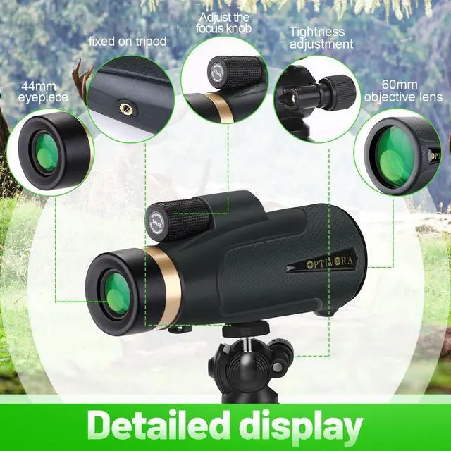 [High Quality Materials]This monoculars for adults high powered is made of advanced FMC coating and BAK4 prism,which combined with the 60MM large objective lens effectively reducing light loss and making the image seen through the single binocular brighter and clearer without black bars,ensuring high-quality quality of the high powered monocular.
