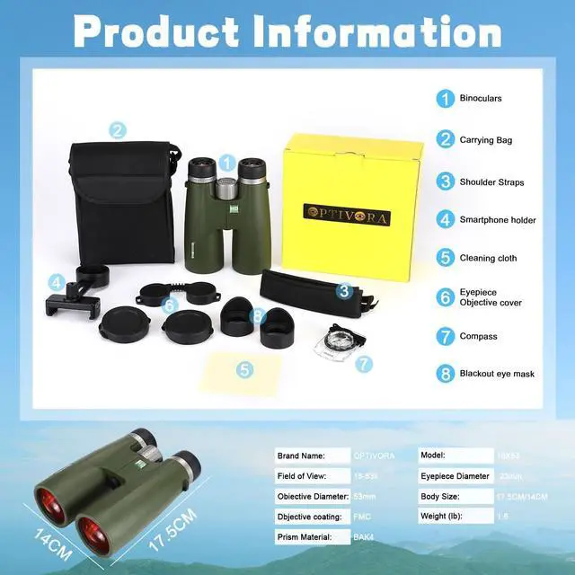 16x53 Binoculars for Adults High Powered with BAK4 Lens Can be as Binoculars for Bird Watching,Stargazing or Hunting.Package Also Includes Smartphone Adapter and Compass, etc