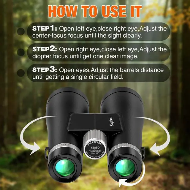 Waterproof & Comfortable Grip--powerful zoom binoculars have an unscented rubber armour coating, a non-slip fingerprint construction, and a safe and comfortable grip surface. O-ring sealed lenses with anti-fog coating keep moisture, dust, and other debris out of the binoculars' interior, making them waterproof, shock-resistant, long-lasting, and easy to hold.