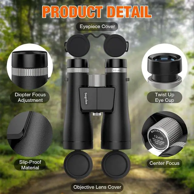 12x50 ED Binoculars for Adults-Professional Roof Prism,HD Optical System Non-Slip Grip, IPX7 Waterproof,High Power BAK4 Prism SMC Lens Binoculars for Bird Watching Travel