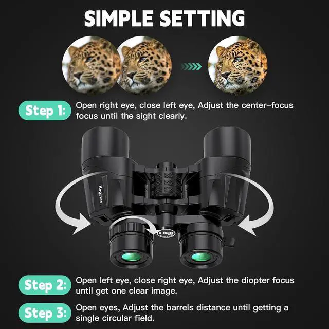 High Power Zoom Binoculars--Professional 10-30x50 zoom binoculars with a 50mm big eyepiece and 10-30X magnification let you focus on the target for excellent details from 235 feet or 1000 yards away. the powerful binoculars provide a bright, sharp, and vibrant image with more true-to-life details, making them ideal for driving, and wildlife and scenic viewing. It works well for large-scale theatre productions, concerts, football games, etc.