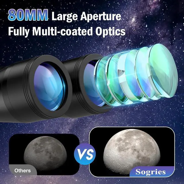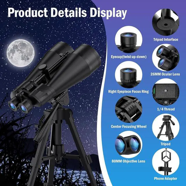 20x80 Astronomy Binoculars for Adults, High Power Stargazing Binoculars with Bak4 Prism, Low Light Vision for Moon Observation & Wildlife Watching, Includes Tripod,Tripod Adapter and Carrying Case