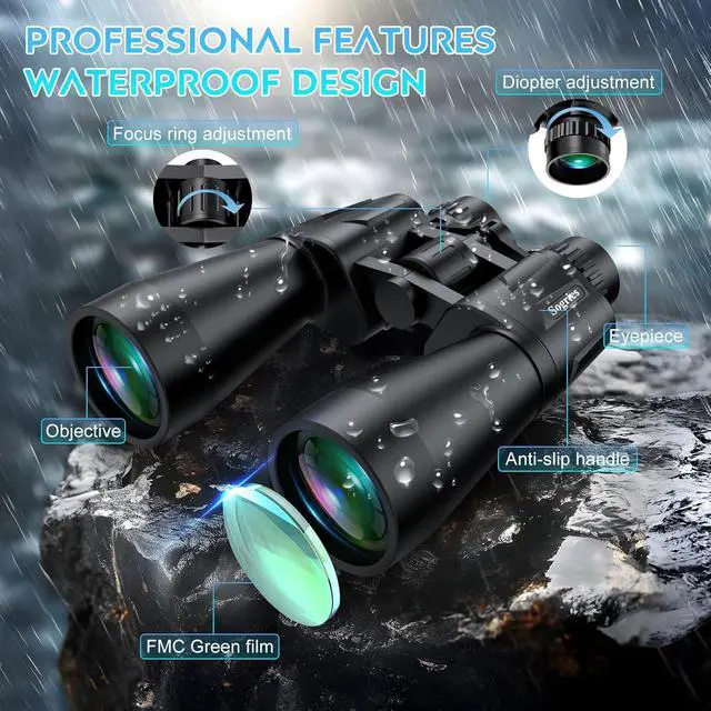 SLEEK,WATERPROOF & SOLID BINOCULARS--The daily waterproof binoculars are made of rubber coating and leather. High-quality design, impact-resistant, firm and comfortable grip, ensure a stable hold, will not slip or accidentally fall, and can be used even in harsh outdoor environments. Long-term handheld observation is easier, and outdoor carrying is burden. (Note: Do not immerse the binoculars in water)