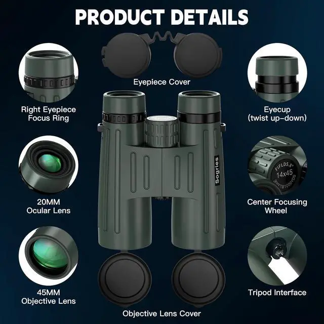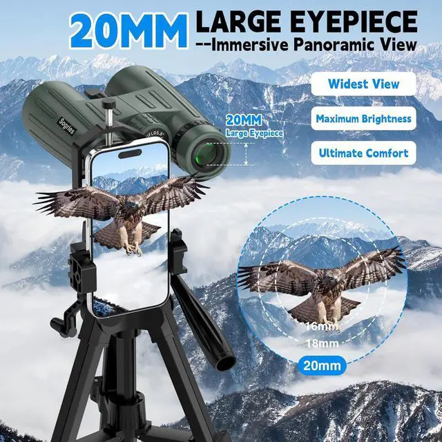 14x45 Binoculars for Adults High Powered-Binoculars for Hunting with Clear Large View,Waterproof,Metal Phone Adapter & Tripod for Bird Watching,Hiking,Concert