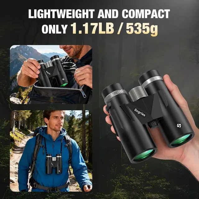 12x42 High-Powered Precision Experience unrivaled clarity with 12x magnification and 42mm objective lenses, delivering a expansive 297ft/1000yds field of view. Designed for bird watchers and nature enthusiasts, these binoculars bridge the gap between distance and discovery, all while maintaining a lightweight 1.1lb (498g) frame for effortless travel.