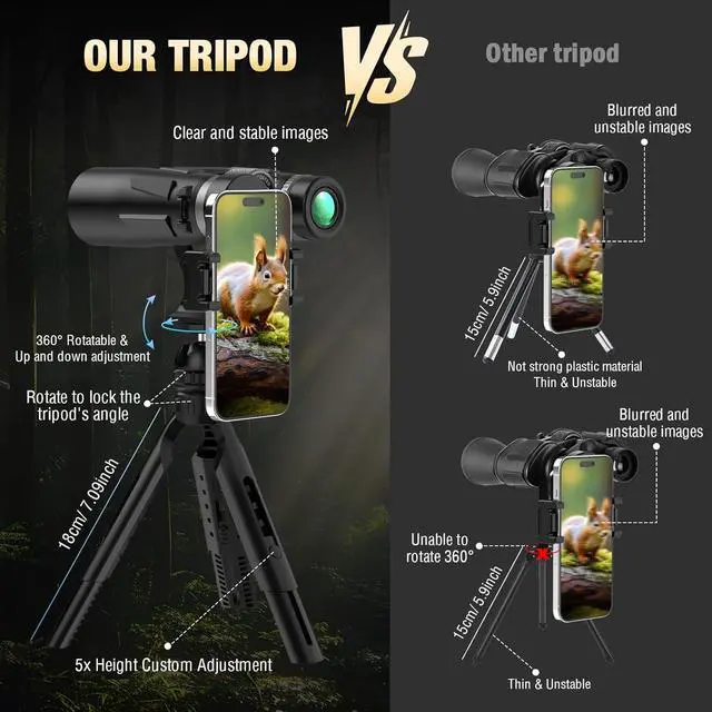 All-in-One Binoculars Kit Transform your observation experience with our 2026 upgraded universal phone adapter and tripod system. This complete kit fits virtually all smartphones, allowing you to capture stunning, high-resolution photos and videos of birds, landscapes, and sporting events with professional-grade stability.