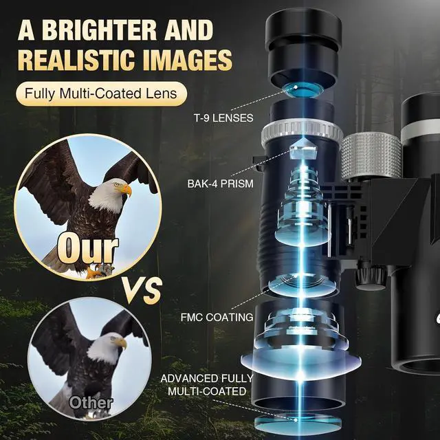 Pro-Grade Optics for Low-Light Performance Engineered with BAK4 prisms and fully multi-coated (FMC) lenses, our optics ensure superior light transmission, color accuracy, and brightness. Capture crisp, vivid details even in challenging conditionsperfect for tracking wildlife in dense forests or at dawn/dusk.