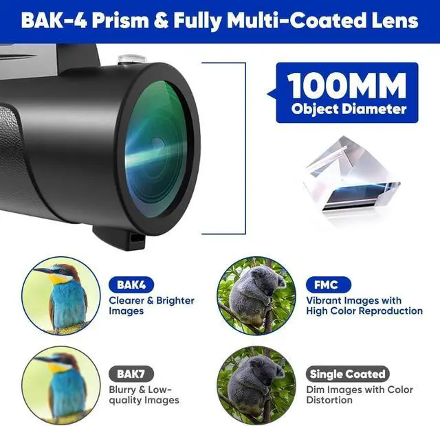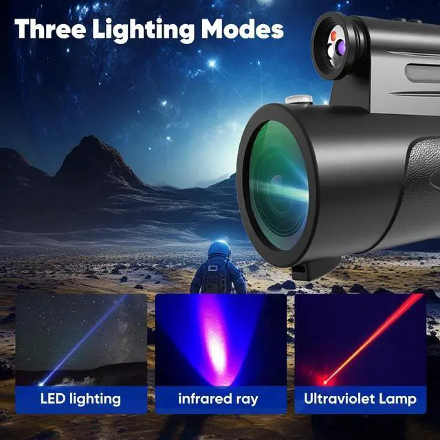 80x100 HD Monoculars:Built-in LED lights one click on instantly illuminate the distance whether it is star observation night hunting or outdoor adventure you can clearly capture every detail in the dark