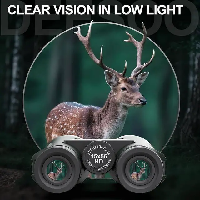 15x56 Binoculars for Adults High Powered - Deesoo Easy Focus Binoculars with Clear Low Light Vision, BAK4 Prism Professional Binocular for Bird Watching Travel Hunting Stargazing Gifts for Men (Green)