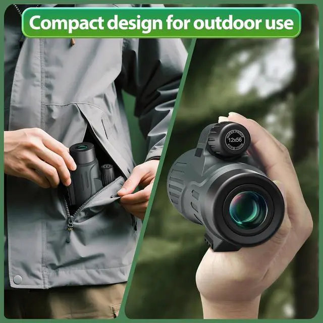 Monocular Telescope for Adults High Powered 12x56 - IPX7 Waterproof Monocular Scope with Low Light Vision - Compact Telescope with Tripod Smartphone Adapter - Bird Watching Hunting Hiking Gift for Men