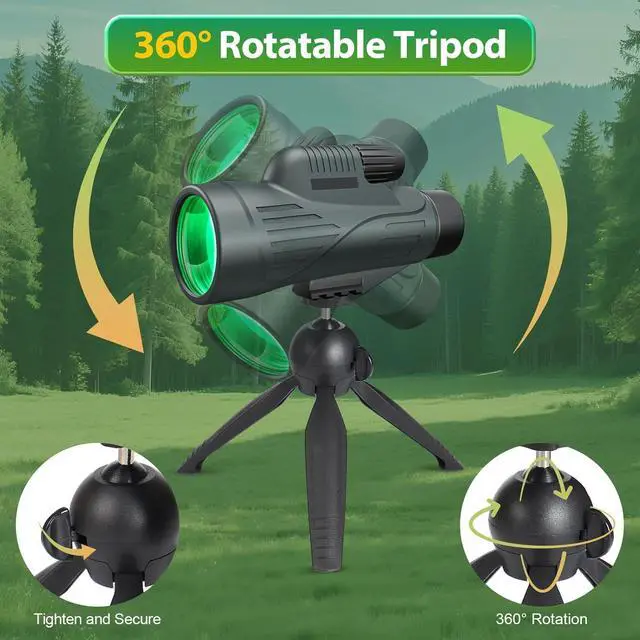 Lightweight & Portable Design: The compact body weighs only 1.65lb and can be easily put into the side pocket of a backpack. The thumb groove and anti-slip texture design allow you to quickly raise it to capture the target when hiking, hunting or camping. The IPX7 waterproof and fog-proof design adapts to harsh environments such as rain, snow, and the seaside, and long-distance outdoor adventures are no longer a burden.