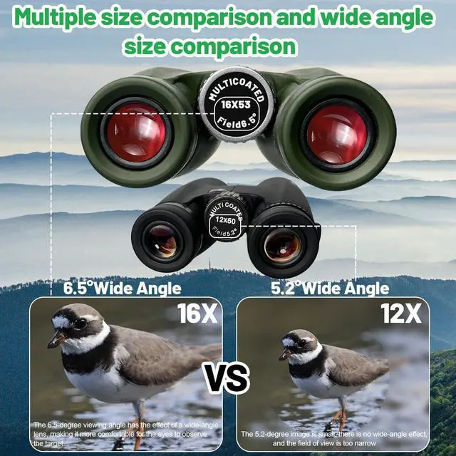 [Binoculars for Multiple Scenarios]This 16x adult binoculars with 53MM objective lens enables you to observe clearer and brighter objects through the hd binoculars to meet your daily needs,and can also be used as bird watching binoculars for adults,hunting binoculars,concert binoculars or travel binoculars for cruise ship.