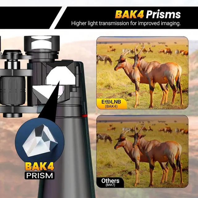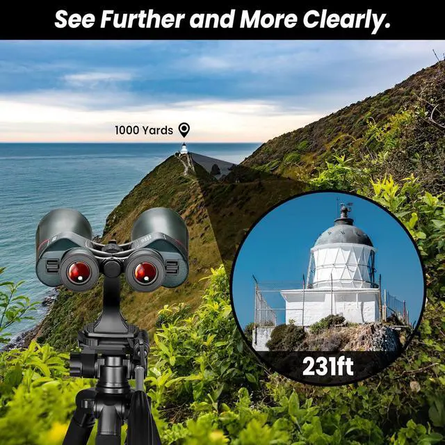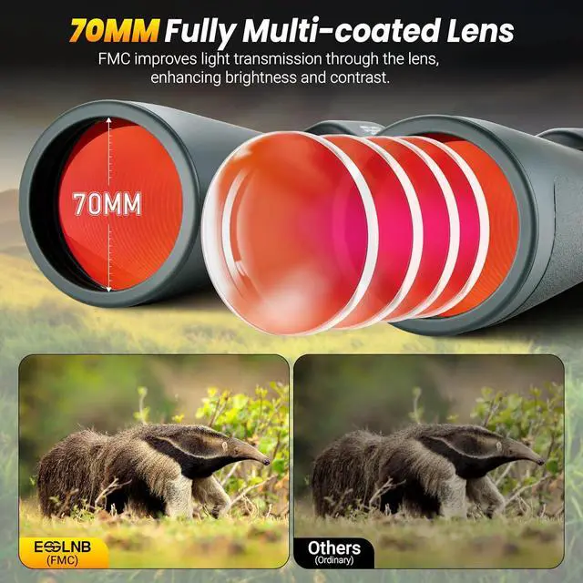 Giant Binoculars:13-39X zoom magnification and 70mm fully multi-coated objective offer great brightness and higher-contrast images in low-light and long-range conditions, which has higher-contrast images and reduces color errors and distortions.