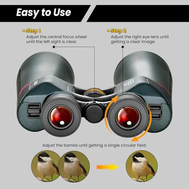 Long eye relief is also ideal for eyeglass wearers. 288ft field of view at 1000 yards offers you a wider field of view. Easier to observe fast moving objects.This zoom binocular offers you a new feeling of viewing experience.