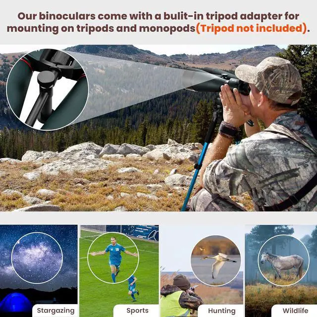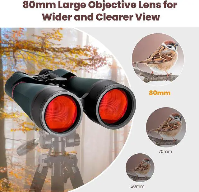 Built-in Tripod Adapter:Built-in tripod mount makes the binoculars perfect for viewing distant objects, even the sky, you can mount your 80mm binoculars on any conventional photographic tripod. Tripod adapter for steady, hands-free viewing; stabilises your view for added comfort and shake-free viewing.
