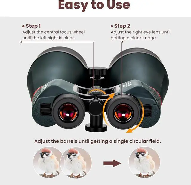 Waterproof Binoculars:The rugged armored housing protects your binoculars from damage and provides a secure gripping surface for long time to use. The waterproof exterior means you don't have to worry about being caught in an unexpected rainstorm.