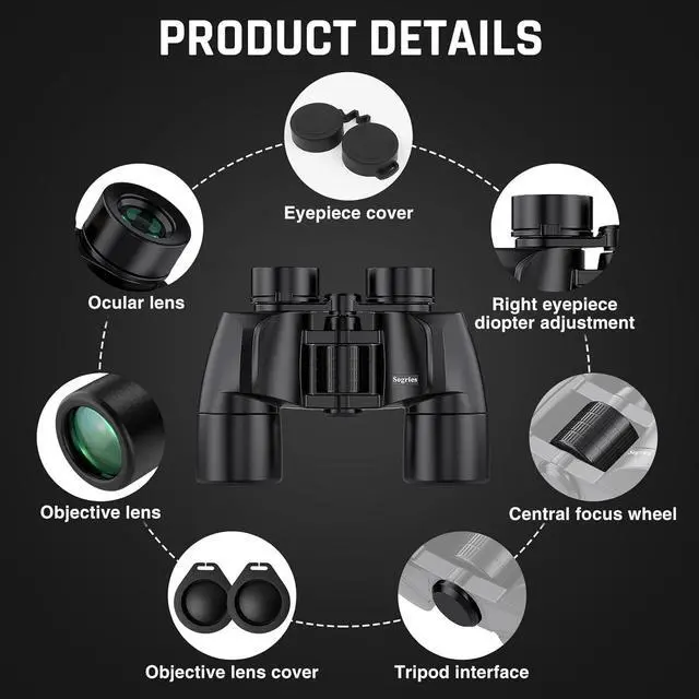 COMFORTABLE & NON-SLIP DESIGN:These binoculars for adults feature a rugged rubber-armored housing that absorbs shocks while providing a secure, non-slip grip. The waterproof construction ensures reliable performance in sudden rain, fog, or humid conditions.The O-ring sealing lens prevents dust and other debris from entering the inside of your binoculars, protecting your binoculars from damage