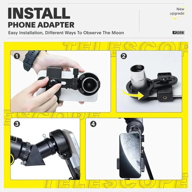 Portable & Stable: Comes with a phone adapter and adjustable aluminum tripod. You can mount your phone onto the telescope with the adapter to take photos or videos. The tripod offers stable support and is easily adjustable for better viewing.