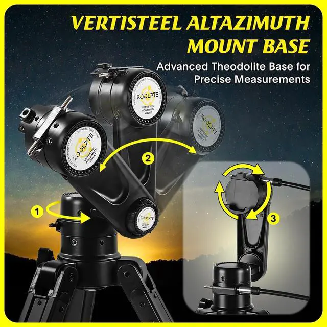 Sturdy and Durable Mount: The sub-black Vertisteel Altazimuth Mount provides stable support, allowing the lens to move smoothly with high precision and maintain accurate positioning.