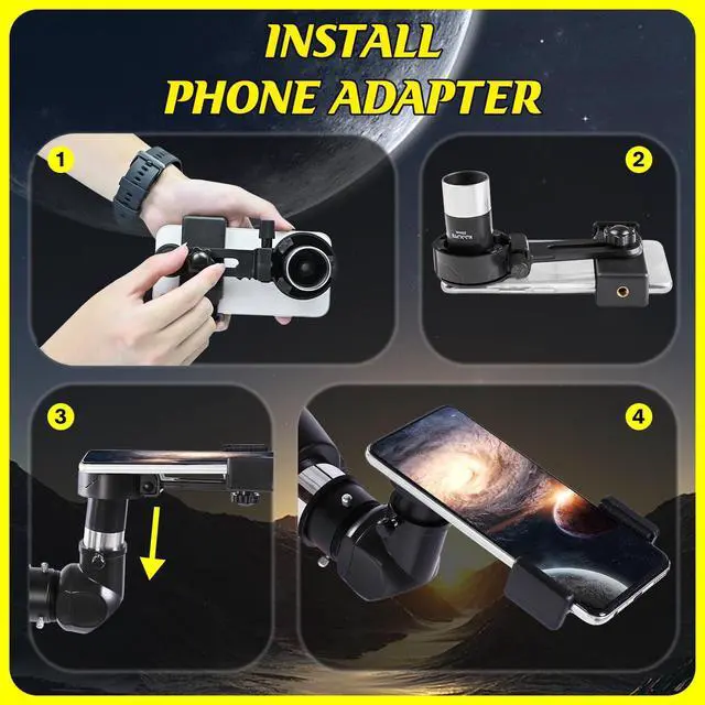 Phone Adapter & Wireless Remote: This telescope not only includes an Digital eyepiece, but also a phone adapter and wireless remote. You can easily capture and share images and videos of your observations on your phone without physically touching the telescope. This allows for a steady and stable observation experience, while also making it convenient to share your discoveries with others.