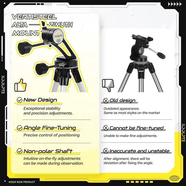 Sturdy and Durable Mount: The sub-black Vertisteel Altazimuth Mount provides stable support, allowing the lens to move smoothly with high precision and maintain accurate positioning.