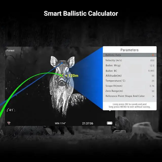 Ballistic Calculator for Precise, First-Shot Accuracy The integrated ballistic calculator estimates bullet drop and compensates for range, wind, and elevation, helping you make faster, more accurate shots at varying distances. Perfect for long-range hunting, tactical shooting, and field scouting, it ensures confidence in every shot, even under challenging outdoor conditions.