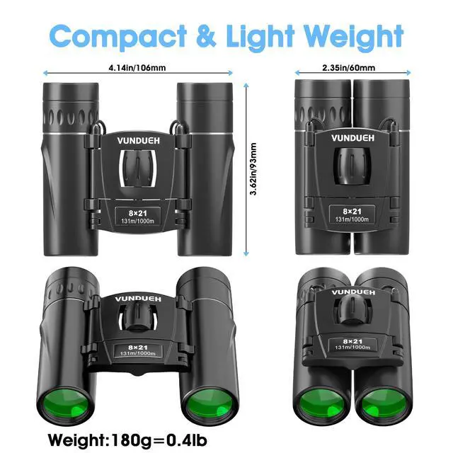 Suitable for Adults and Children - Mini compact binoculars weigh only 5.3 ounces, breaking away from traditional large constructions. They are small enough to fit in a pocket or travel bag. The binoculars come with a neck strap, cleaning cloth, and carrying case, allowing you to use them anywhere, anytime without being tied down.