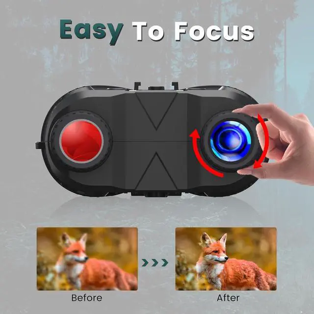 Easy to use for beginnersCompared to other goggles, this night vision goggles for hunting is easy to focus, you just rotate the focus know clockwise, you will get a clear image. Not only provide free memory cards, but also a card reader. Simply use the card reader to transfer clear electronic device, you can download photos or video and share with friends. Night vision goggles are suitable for military tactical.