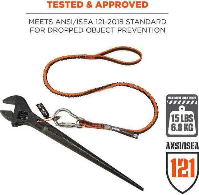 California Proposition 65: This product contains a chemical known to the State of California to cause birth defects or other reproductive harm. Tool Lanyard, Anchorage End Connection Carabiner, Anchorage End Material Stainless Steel, Brand and Series Ergodyne Squids 3101F (x), Color Orange, For Tool Type Hand Tools, Power Tools, Hardware Material Stainless Steel, Max. Working Length 48 in, Series 3101F (x), Tether Material Poly Webbing, Tether Style Standard, Tethering Component Tether, Tool End Connection Loop, Weight Capacity 15 lb